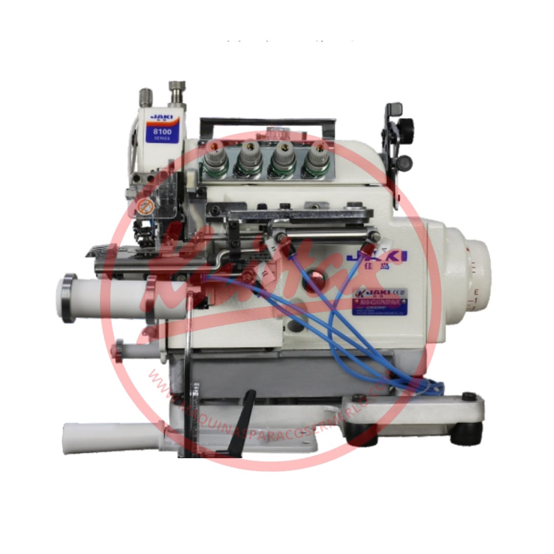 La JR8100-4CD/AT/PN/RTP/RM/PC es una máquina overlock industrial de alta especialización, diseñada específicamente para colocar cuellos, puños y cinturas de manera eficiente, prolija y precisa. Equipada con motor servo (direct drive), boquilla embutidora neumática, luz LED y múltiples accesorios de automatización, está preparada para trabajar en líneas de producción exigentes con tejido de punto.
