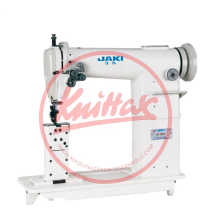 La JR820 es una máquina industrial tipo poste con dos agujas, ideal para la confección de productos tridimensionales y de difícil acceso, como calzado, bolsos, carteras, tapicería, marroquinería y artículos cilíndricos o curvos. Su estructura de poste elevado permite una maniobrabilidad superior y gran precisión en costuras complejas.